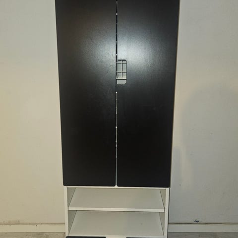 Hvis du vil ha en større oppbevaringsløsning, kan du plassere KOLBJÖRN hylle, som selges separat fra Ikea, på toppen av skapet. Dørene lukkes tett og holdes lukket med en magnetisk lås.