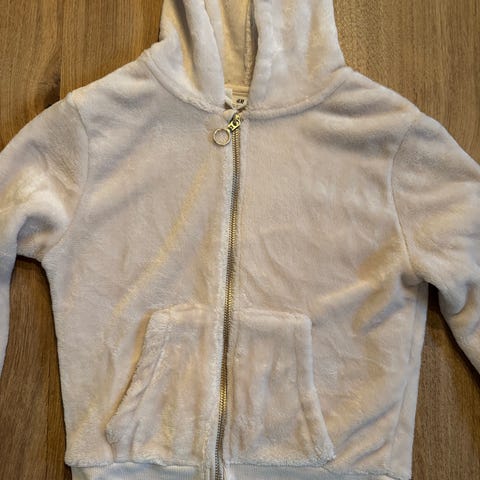 H&M hettejakke for barn i størrelse 158. Jakken er hvit og laget av bomull. Modellen har hette, glidelås i front og to frontlommer. Ribbekanter nederst og ved ermene. Unisex-modell som passer både til hverdag og fritid. Det kan forekomme mindre bruksspor og en liten flekk, se bilder for detaljert tilstand.