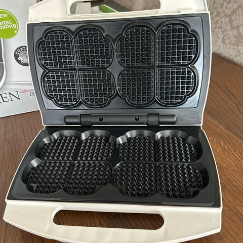 Har ikke vært i bruk. Kun stått oppbevart på kjøkkenbenk/kjøkkenskap. Muligens noen småriper etter stabling sammen med andre kjøkkenutstyr.
