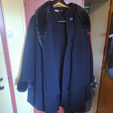 Vakker ullfrakk med ekstra krage som er avtagbar og kan brukes om høsten.