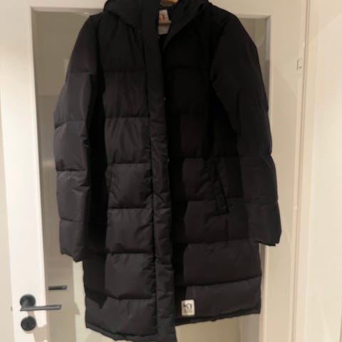 Kari Traa vinterjakke for dame i størrelse S. Jakken er svart og laget i polyester. Modellen er en lang, vattert vinterjakke med hette. Den har glidelåslukking foran, sidelommer med klaff og ribbestrikkede mansjetter. Egnet som ytterjakke på kalde dager i hverdagen eller til fritidsbruk.