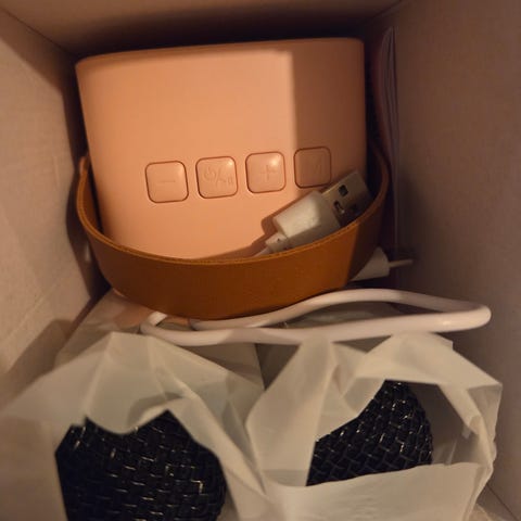 Karaokevert med høyttaler og to mikrofoner til barn. Julegave som ble åpnet og testet, men eller ikke brukt. Ble for bråkete leke for oss…