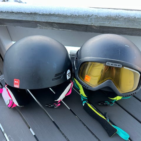 Slalomhjelm størrelse S: 100,- pr hjelm. 50,- for briller
