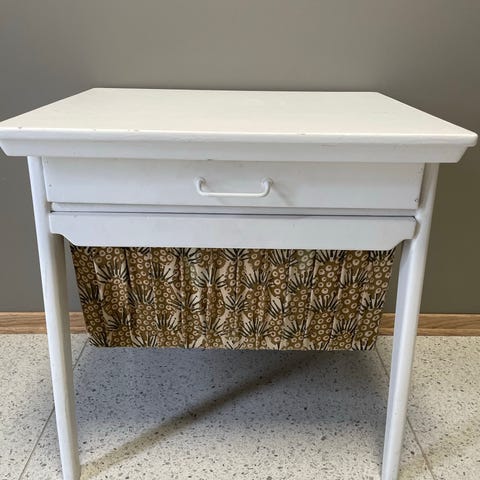 IKEA skap i mørk treimitasjon. Skapet står på ben og har én dør med rundt håndtak/åpning på fronten. Innvendig er det én hylle som gir to oppbevaringsnivåer. Passer til oppbevaring i stue, gang eller soverom.