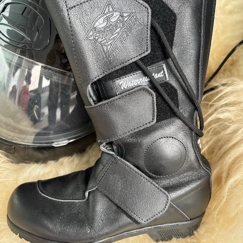 Lite brukt og oppbevart i mange år. Fortjener mer bruk 😊 se også skinnjakke tilhørende egen annonse, hjelm, hansker og støvler. Selges som d er og forsøkt priset billig der elde forringer kvalitet. Kjøpt for 30 år siden. Håper allikevel feks hjelm kan brukes til noe; teater el.