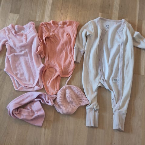 Ullpakke til jente i størrelse 80 med ullstrøpebukser, ullpysj, ullundertøy, ullbukse og ulllbody