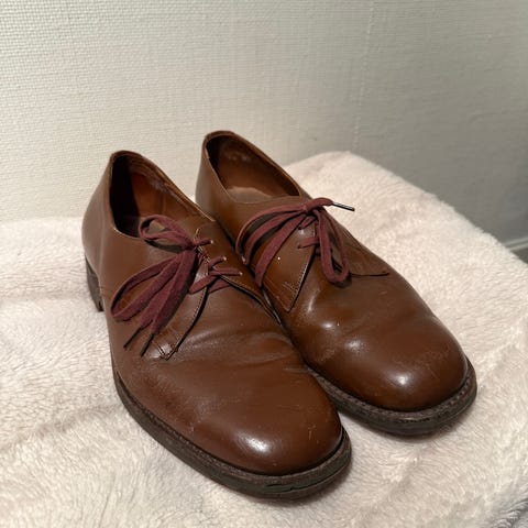 pensko i brun skinn, størrelse 40. Klassisk snøremodell med rund tå og lav hæl. Yttersåle i gummi med mønster for bedre grep. Passer til bruk i hverdagen eller til mer formelle anledninger der man ønsker et enkelt og tidløst uttrykk.