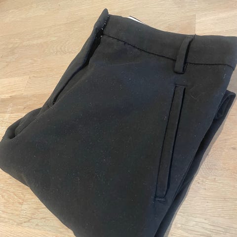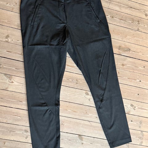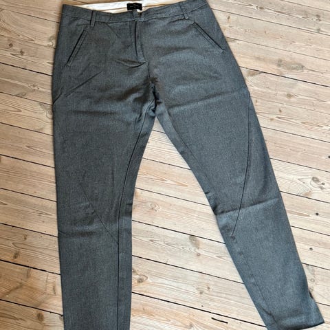 Buksen er blå og laget i polyester og viscose. Modellen har smal passform med rette ben, beltehemper i linningen og glidelås- og knappelukking foran. Foran er det skrålommer, og bak er det to passpolerte lommer. Egner seg til både hverdagsbruk og mer formelle anledninger.