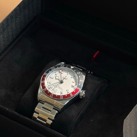 Tudor Black Bay Chrono, referanse M79360N. Dette er en sportslig kronograf med tydelige vintage-inspirerte detaljer, blant annet de klassiske “snowflake”-. En klokke som kombinerer Tudors dykker-DNA med racing- og kronograftradisjon. Allsidig, robust og med masse tilstedeværelse på håndleddet.
