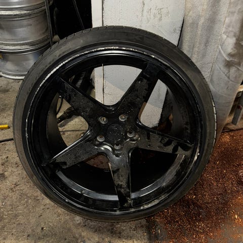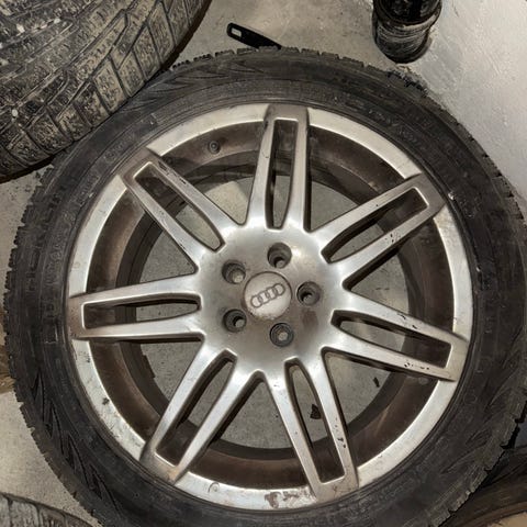 Vertini RF 1.3 felger 4 stykk, to som er kant kjørte, men det er bare å pusse ned og lakkere, og to som er hele. Sitter sommerdekk som følger med 235/35-R19.