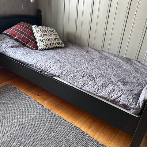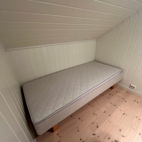 Seng med 90x200 cm god og fin DremeZone madrass, to gode skuffer i bunn. En liten skade ( se bildet)