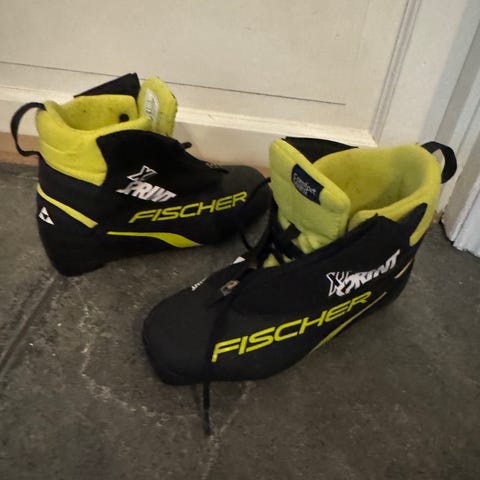Smørefrie langrennski til barn. Lengde 115cm. Stavene er 95cm lange. Skiene har Rottefella bindinger.