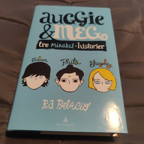 R.J. Palacio Wonder bok i engelsk utgave. Paperback-format med illustrert blå forside. Romanen følger gutten August og er skrevet for barn og unge, men kan også leses av voksne. Boken inneholder sammenhengende tekst uten illustrasjoner inne i boken, med kapitler og dialog på engelsk. Passer for lesere som ønsker en engelskspråklig utgave av denne tittelen.