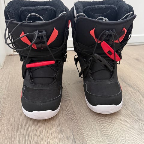 Northwave Freedom F2.0 snowboardstøvler i størrelse 39 ( liten i størrelse, tilsvarer ca 37) Modellen har tradisjonell snøring foran og kraftig yttersåle med godt mønster for feste på snø og is. Støvlene er i hovedsak hvite med svarte detaljer og svart innersko. Myk til medium fleks gir komfort og støtte til allround kjøring i bakken. Passer til bruk med vanlige snowboardbindinger som er kompatible med denne typen såle.