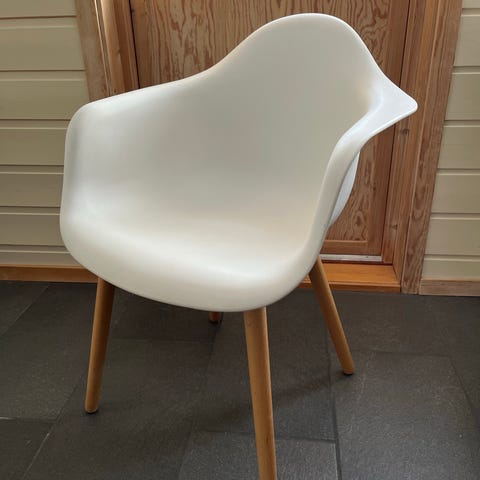 Selger ikonisk Eames-stol fra Vitra. Tidløst design med komfortabelt plastskall og elegant treunderstell. Passer perfekt rundt spisebordet, på hjemmekontor eller som enkeltstående stol.