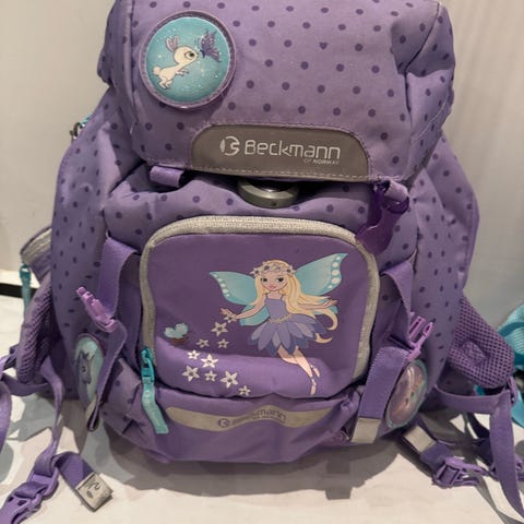 Beckmann Dino skulesekk i blå farge med dinosaurmotiv. Sekken har polstra og ventilert ryggpanel, justerbare skulderstroppar og hoftebelte. Fleire utvendige og innvendige lommer gir plass til skulebøker, matboks og andre småting. Passar som skulesekk til barn i fyrste og andre klasse.