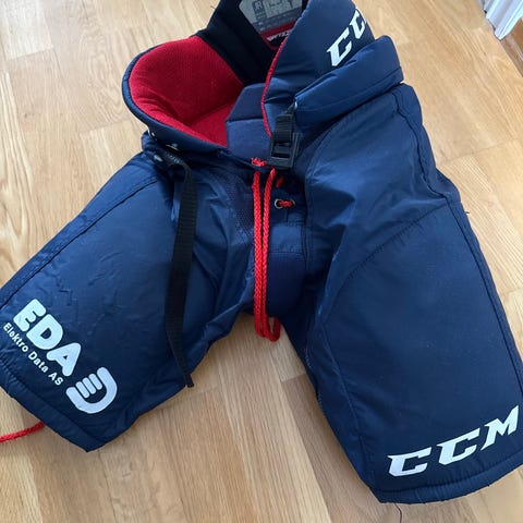 CCM RBZ ishockeybukse for junior i størrelse Small. Buksa er beregnet for ishockey og har polstret beskyttelse rundt hofter, lår og korsrygg. Farge svart med røde detaljer og snøring i front for justering av passform. Modellen er merket JR Small, passer ifølge merking for kroppshøyde ca. 134–142 cm. Egnet som beskyttelsesbukse til ishockeytrening og kamp for junior.