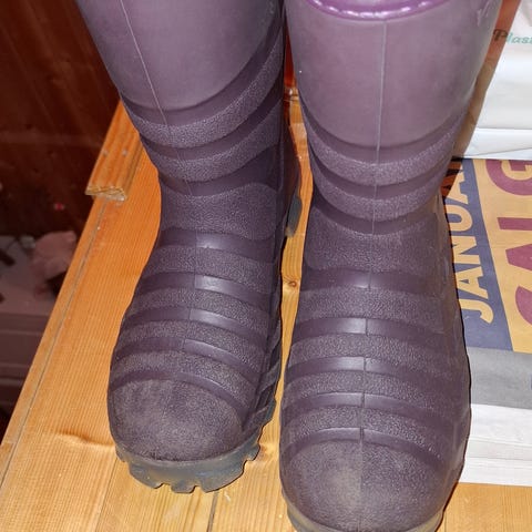 Viking barnestøvel, str 32. Støvlene er i en lilla farge med lysere såle og kant. Grovmønstret yttersåle gir godt grep på vått og ujevnt underlag.
