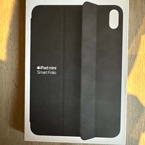 Apple iPad mini Smart Folio deksel for iPad mini 6. generasjon. Dekselet er i fargen svart og dekker både for- og baksiden av nettbrettet. Det har sammenleggbar front som kan brukes som støtte for ulike visningsvinkler, for eksempel til skriving eller medievisning. Designet for å passe til knapper, kamera og porter på iPad mini 6. generasjon.