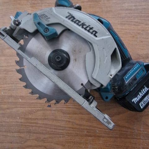 Makita børsteløs sirkelsag DHS680 Ø165mm. Funker men NB! Knekt bunnplate.
