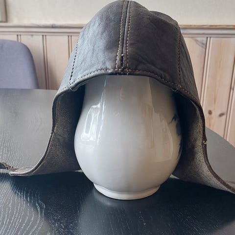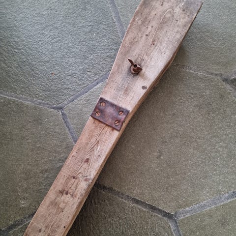 Det jeg fikk vite om den var at han vistnok hadde brukt den når han sydde seletøy til kongens arbeidshester...... om det stemmer vet jeg ikke, men litt morsomt er det. Størrelsen kan kanskje tilsi at det stemmer.