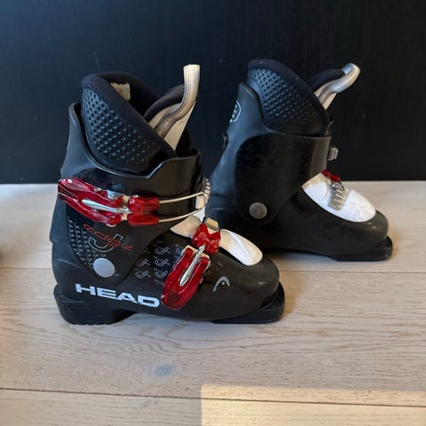 Head alpinstøvler for barn i skostørrelse 190–195 mm. Støvlene har to spenner i metall og plast for justerbar passform. Fargekombinasjon svart, hvit og rød med lys innersko. Bak på skaftet står det «Easy Entry Push» som gjør det enklere å ta støvlene av og på. Passer til alpinski med kompatible bindinger for barnestøvler i denne sålelengden.