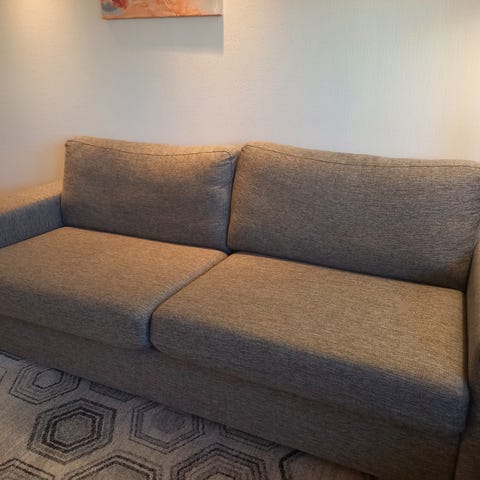 Brukt i snart 3 år. Trekk kan vaskes og enkelt å trekke ut sovedel. Let å demontere. L 200cm b 100. Seng 140cm x 190cm