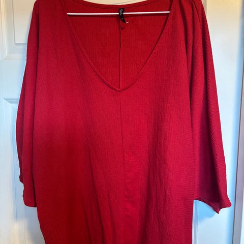 Begge plaggene er i mykt, tynt og deilig stoff bestående av 50%ull, 30% viskose og 20% nylon. Fargen er rustbrun eller rust oransje. Genseren er i str L og cardigan er i str M men er stor i størrelsen.