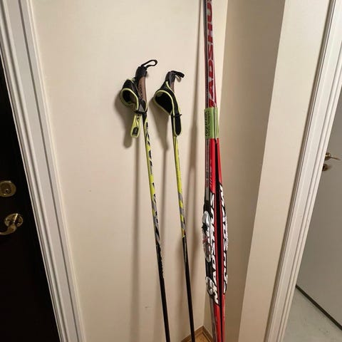 Lengde 203 cm og staver 165 cm selges billig grunnet flytting.
