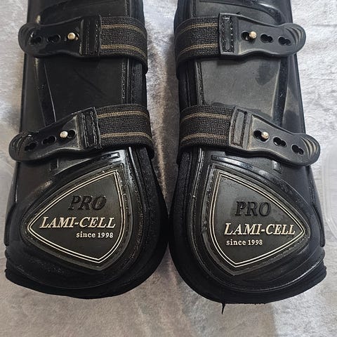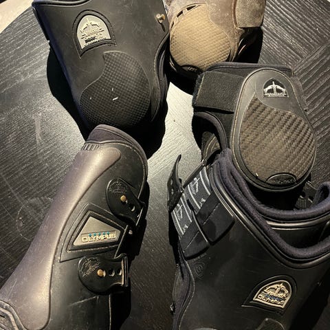 Sorte Veredus Olympus frambeinsbelegg i str L. Brukt men i hod stand, normal slitasje.