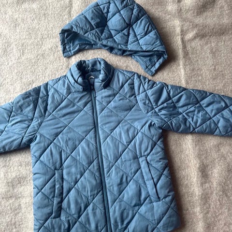 Med avtagbar hette, lommer med klaff og trykknapp. Ermene har justerbar lukking med knapp. Passer som ytterjakke til hverdagsbruk for barn i str 122.