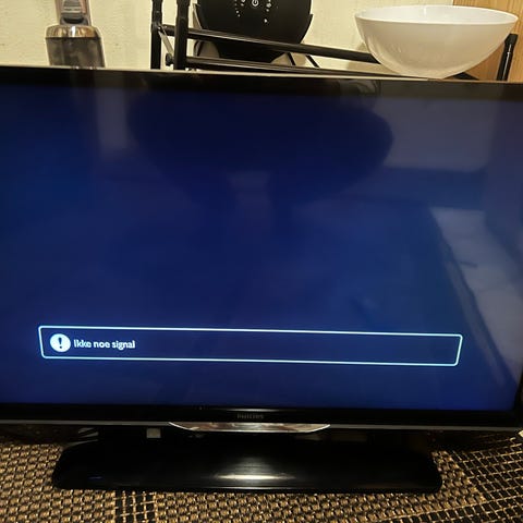 Philips TV med flatskjerm. TV-en har innebygde høyttalere i nedre del av rammen og flere knapper for betjening på siden. På siden finnes også analoge tilkoblinger (kompositt video og lyd). Fjernkontroll og bruksanvisning fra Philips følger med, slik at alle grunnleggende funksjoner kan styres via fjernkontrollen. Egnet som vanlig TV-skjerm eller som skjerm til enkle tilkoblete enheter som DVD-spiller eller lignende, avhengig av tilgjengelige tilkoblinger på baksiden.