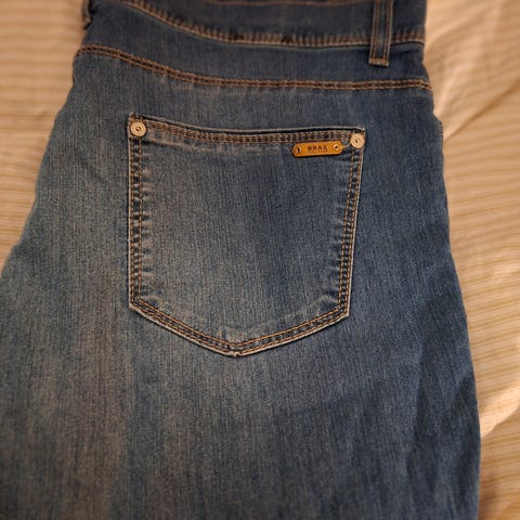 Behagelig jeans, farge sort, lite brukt. Bildene lyver da den ser grå ut, men den er helt sort.