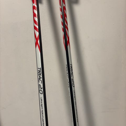 Singel stav. Pent brukt. 157.5 cm. Kappet fra 160 cm stav av bull ski og kajakk. Se sammenligning med annen stav som er produsert som 157.5 cm høyde.