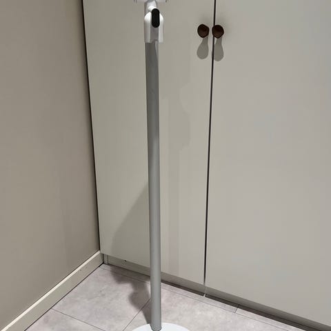 Dyson støvsugerstativ med tilbehørsholder i hvit farge.