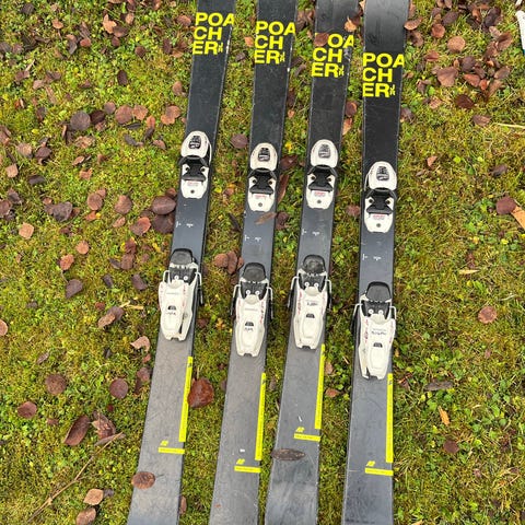 K2 Poacher twintip ski i lengde 149 cm. Skiene har twintip-konstruksjon som er egnet for park- og frikjøring. Overflaten har oransje og grønne farger med grafiske detaljer. Montert med bindinger, som følger med. Passer til alpint bruk i bakke og park. Nøyaktig midtbredde og andre tekniske mål fremgår av trykket på skiene på bildet. Et par riper i sålen, kan antagelig fjernes ved sliping .
