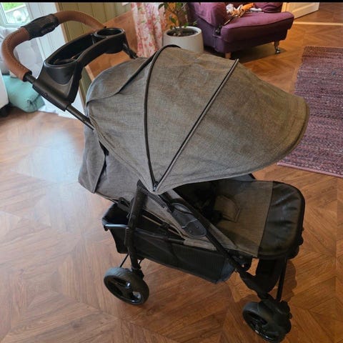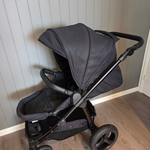 Petite Chérie sportsvogn i svart tekstil. Vognen har justerbar rygg, kalesje og frontbøyle. Under setet er det en oppbevaringskurv. Vognen har fire doble hjul og sammenleggbart chassis som gjør den enkel å slå sammen for transport og lagring. Super fin vogn til å ha til syden . Kjøpte nytt i 2016 og brukte til 2 barn . Ingen rust beholder hjemme ikke i garasjen. Har til den en stor pose som du ligger vogna inn hvis du skal på fly.