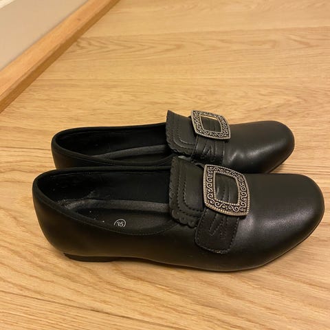 Pent brukte bunadssko fra Eurosko. Ingen skader. Gode og myke sko å gå i. Brukt kun av ei jente.