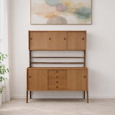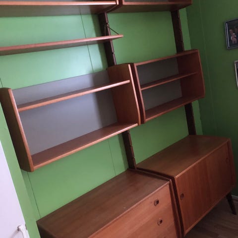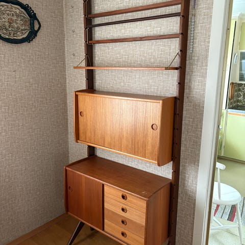 Ergo de Luxe vegghengt teak seksjon produsert av Blindheim Møbelfabrikk rundt 1970.