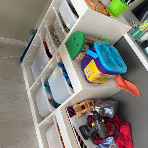 Hylle med pppbevaringskasser! (Om andre farger ønskes, selges disse på ikea). Stått på barnerom, noen bruksmerker, men fremstår som pen. Hentes i Sande