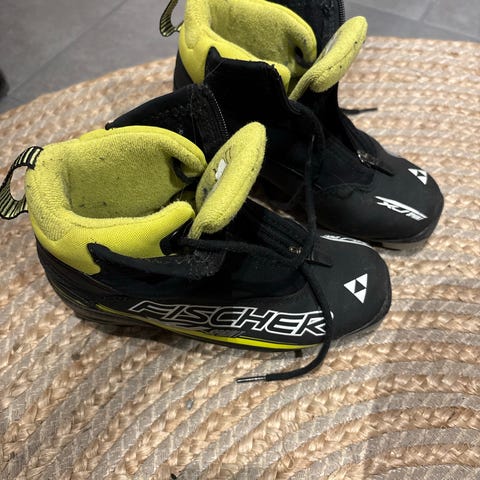 Fischer barn skisko i størrelse EU25. Modellen er en varm og høy skisko med mykt, fôret innerdel og borrelåslukking over vristen for enkel justering. Skoene har kraftig yttermateriale og såle tilpasset langrennsbindinger for barn. Farge hovedsakelig svart med kontrastdetaljer.