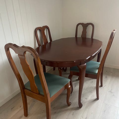 Bordet har nokre bruksmerker, men dei kan fint pussast bort og bordet oljast på nytt om ønskelig.