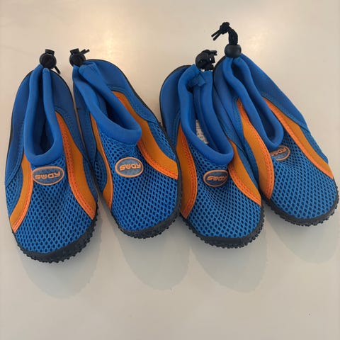 2 par ubrukte badesko str 32/33. Begge par er ubrukte, ene er prøvd på. Str 32/33. Pris for begge