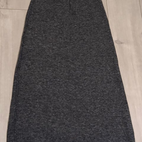 Mykt, behagelig skjørt i en viskose-/bomullsblanding. Strikk i livet med fint knytebånd i fløyel. To lommer foran, lomme bak og en liten splitt i hver side. Det perfekte hverdagsskjørtet! Det står M på, men passer fint til meg som vanligvis bruker Small. Lengde: 88 cm