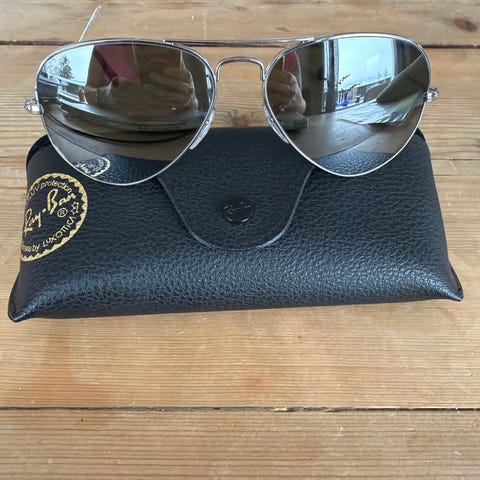 Ray-Ban Aviator solbriller for unisex med metallinnfatning i gullfarge og mørke linser. Klassisk pilotformet modell som leveres med originalt brunt etui. Passer til både hverdag og fritid, og gir god skjerming mot sollys.