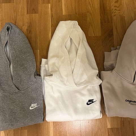En grå hettegenser i str 158/164, men den måles til like stor som den i str 170. Kr 50,-