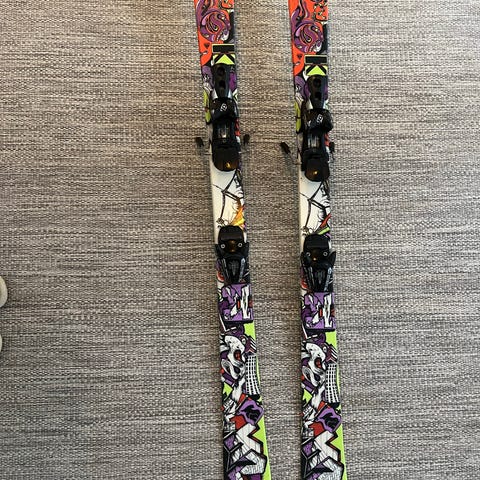 Pent brukte og fortsatt fine K2 Twin tip alpinski til unge lovende selges. Ikke mye riper i såla og de er gliset og klare til bruk. Gode Marker bindinger. Ok innsving til å være Twin tip.