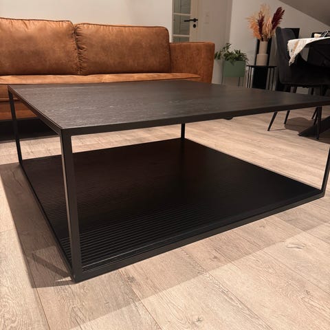 Attraktivt sofabord i mørk brun/sort kombinasjon .