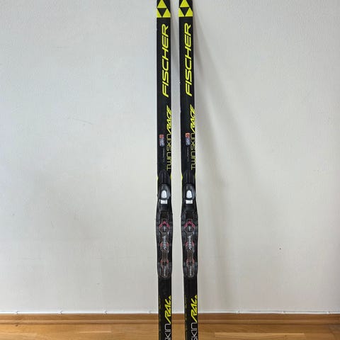 Selger et par Fischer RCR Universal langrennski, 137 cm, med Rottefella‑bindinger. Skiene er godt brukt, men jevnlig vedlikeholdt og fungerer fint som rimelige treningsski for den som vil ha et solid par uten å betale mye.