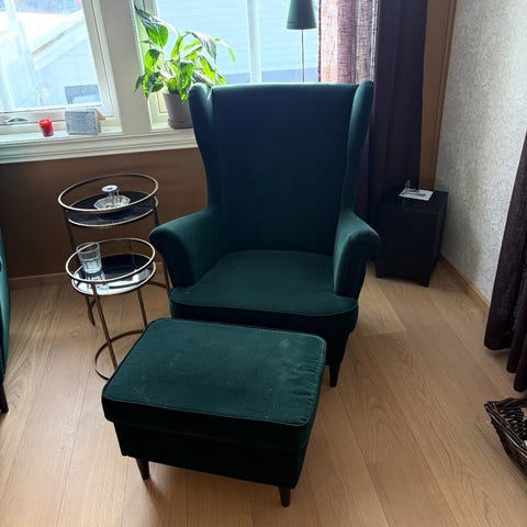 IKEA Strandmoen lenestoler med fotskammel selges. 1500kr pr stol. Røykfritt hjem, men har katt så kattehår kan forekomme. Har også en i brun uten fotskammel, 1200kr. Må hentes (Hafrsfjord)
